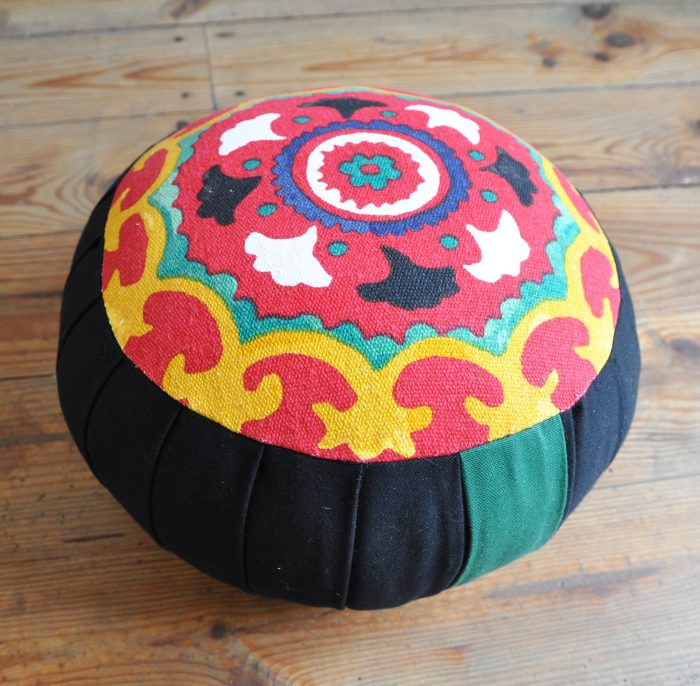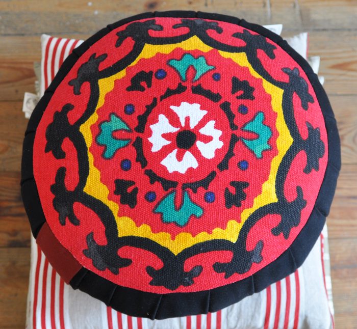 Les zafus « ouzbek », réalisés dans un tissu à motifs dans le style des nomades d’Europe centrale…